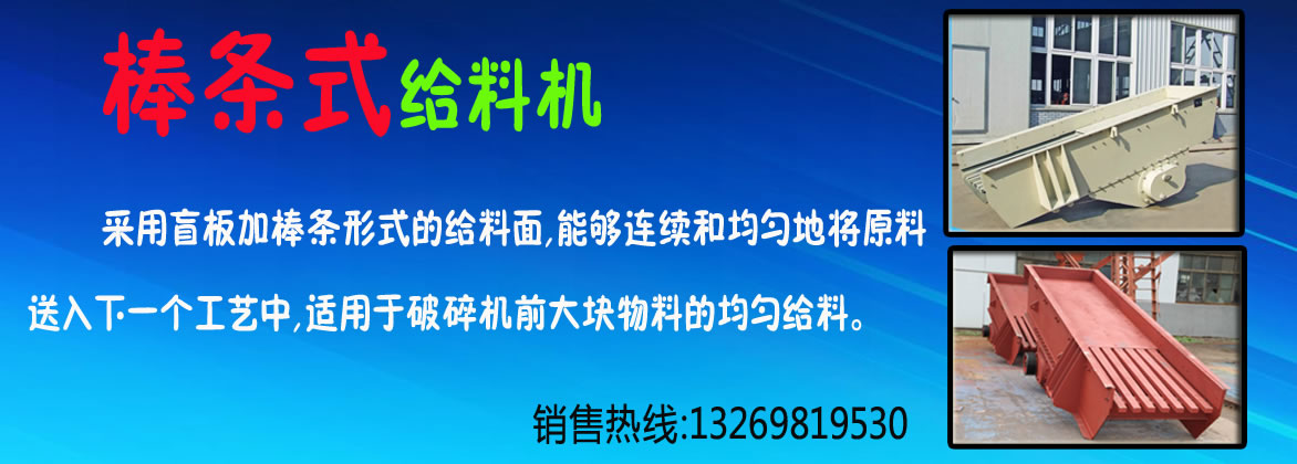 該設備特別適用于黑色或有色金屬礦石、建筑石料粗碎或中碎前的給料用,其樣式分為:激振器式、振動電機式、吊掛式三種,其棒條縫隙可調,能在給料同時將泥土和細碎物料分離出去,有效地發揮了后面的破碎機功能。